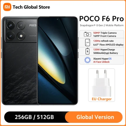 【New users, one day only】POCO F6 Pro 5G Smartphone Global Version Snapdragon 8 Gen 2 50MP Triple Camera 6.67″ 120Hz WQHD+ AMOLED Display 120W HyperCharge