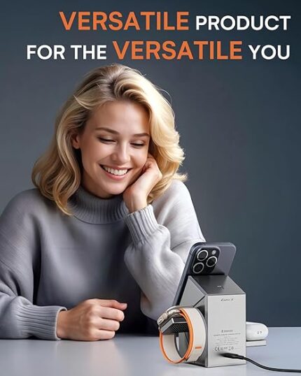 ZEEHOO 3 in 1 Charging Station for Apple MagSafe Charger, CubeTrick-X Qi2 15W Fast Wireless Charger Stand for Apple Watch, for iPhone 16,15,14,13,12 Series, AirPods (30W USB-C Charger Included)